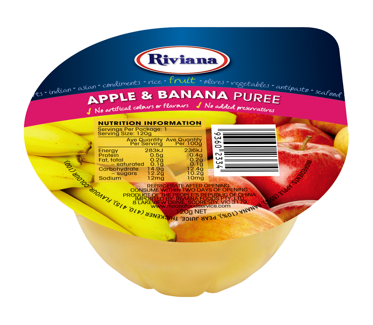 Our Apple and Banana Puree is smooth, lump free and has no added preservatives. Perfectly portioned for an everyday snack. It is ideal in fruit cocktails, sauces and smoothies or quite simply spooned over ice cream and fruit pieces.